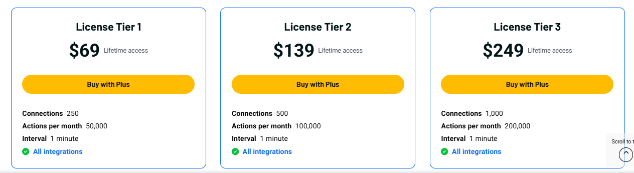 | Simple no-code setup | Limits on actions per plan |
