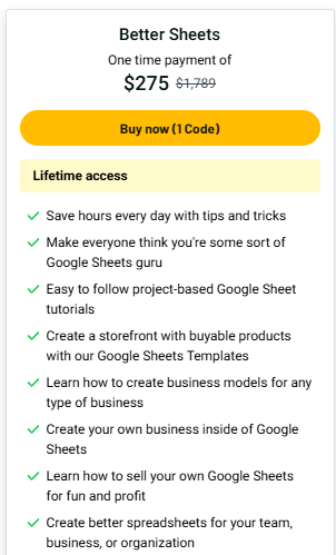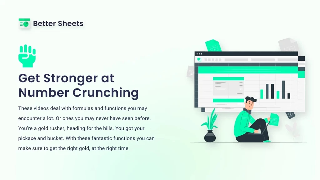 Better Sheets is a simple way to master Google Sheets. It gives you short, clear lessons that solve real problems. If you want to save time, work faster, or build cool tools in Sheets, this course is for you.