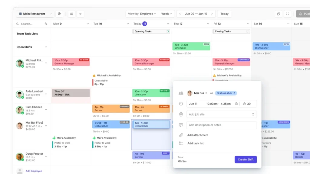 Tasks linked to shifts made sure everything got done. I didn’t need extra tools for team chat or time off. Labor cost forecasting was a bonus—it helped me stay within budget.