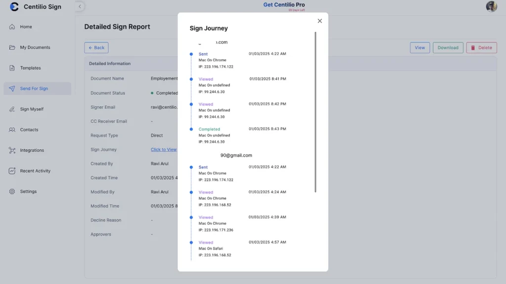 Centilio Sign helps you get documents signed without stress. You can upload files, add fields, and collect e-signatures in seconds. No logins or downloads are needed. It’s built to save time and make signing easy for everyone.