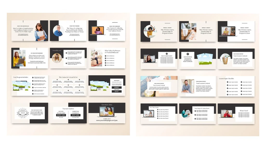 The templates were made for people who teach or share knowledge online. Whether it’s a webinar, course, or lead magnet—you’re covered.