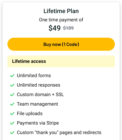 The price is a steal. For $49, you get unlimited forms and responses for life. If you work online and need forms, Deftform is a no-brainer.