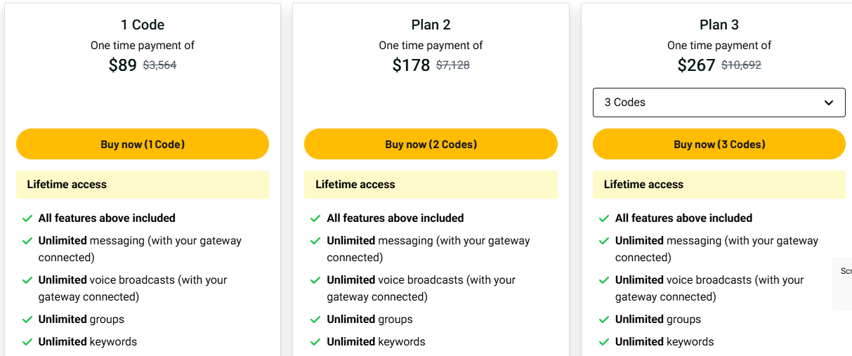 | One-time payment, no monthly fees | Needs a third-party gateway like Twilio |