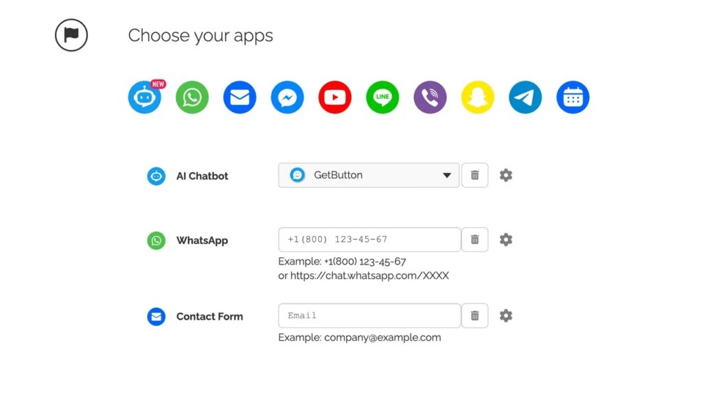 You can add buttons for WhatsApp, Messenger, Telegram, and the GetButton AI chatbot. Visitors choose their favorite way to chat instantly.