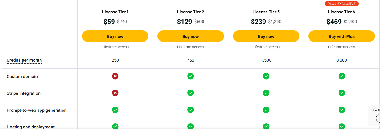 Tip: Start with Tier 1 if you’re testing ideas. Go higher if you need payments or more app credits.