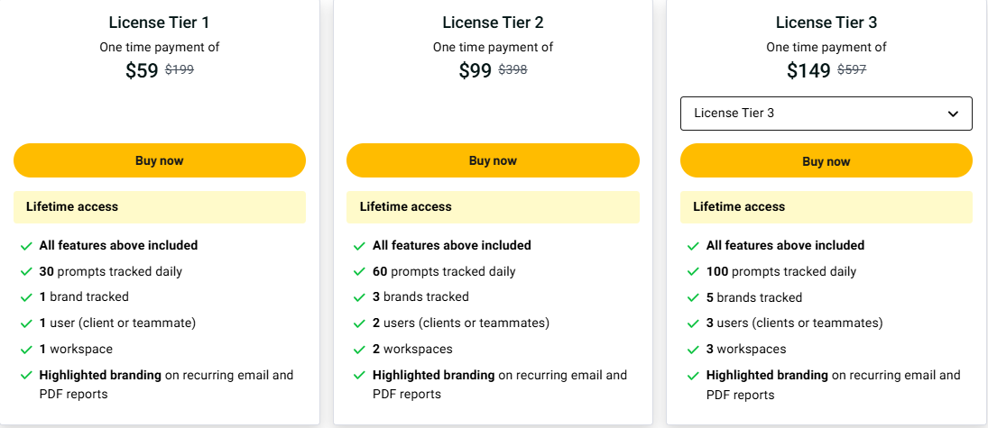 Choose a plan that fits your needs. Plans start at $59 for lifetime use. You get updates and can track several prompts and brands. Plus, there is a 60-day money-back guarantee. With this offer, you’ll not only save money but also gain invaluable knowledge about how to optimize your usage. Dive deep into resumeup.ai lifetime deal insights to ensure you’re making the most of your investment. This access empowers you to stay ahead in your career by leveraging the latest tools and updates available.