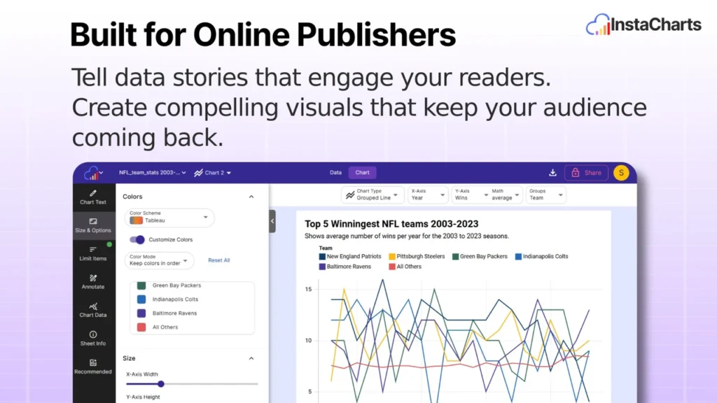 The smart chart tool picked the best format for my data. Embedding on WordPress was smooth. I liked that charts could update automatically from Google Sheets—great for live dashboards or reports.