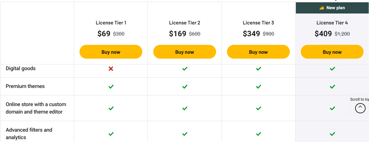 | Works for digital and physical goods | Basic features on lower plans |