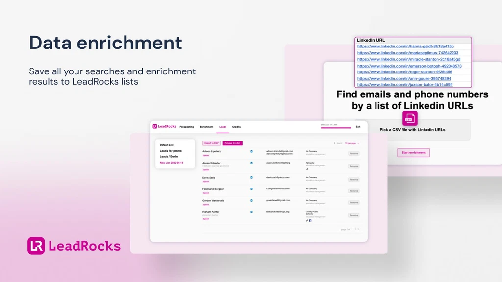 Upload a list of LinkedIn URLs. LeadRocks finds emails and phone numbers from those profiles. It’s fast and accurate.