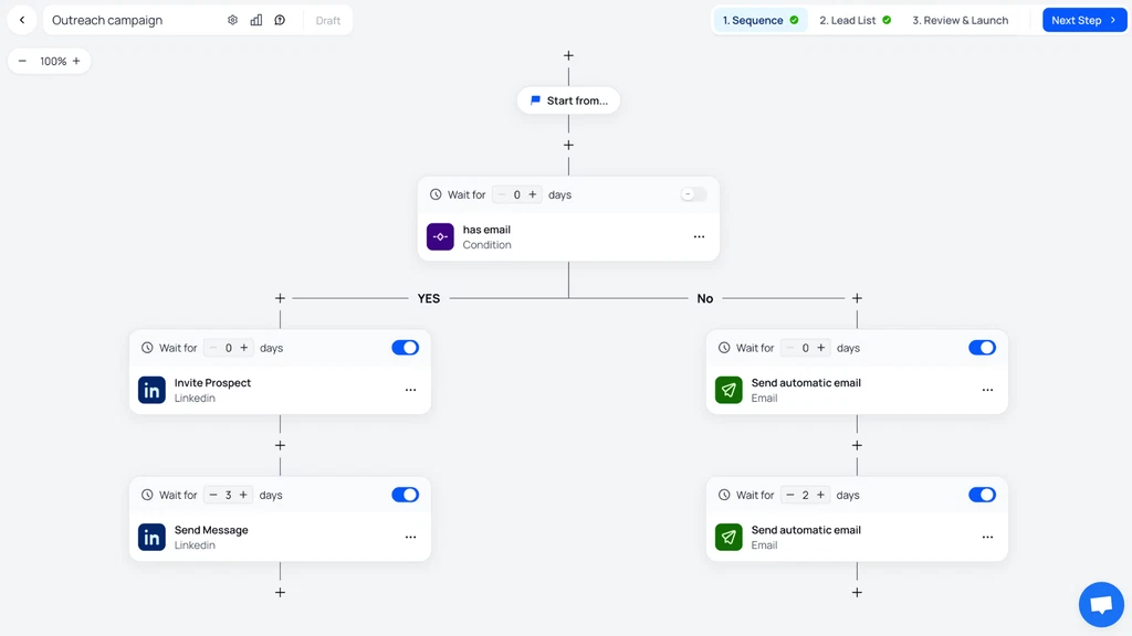 Send emails and LinkedIn messages without doing it all by hand. Set up step-by-step sequences that feel real, not robotic. Follow-ups are done for you—no one slips through the cracks.