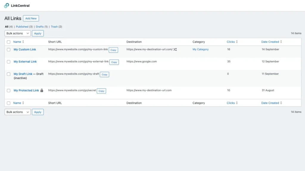 LinkCentral lets you shorten and organize links right inside WordPress. You don’t need extra tools. Everything stays easy to find and edit.