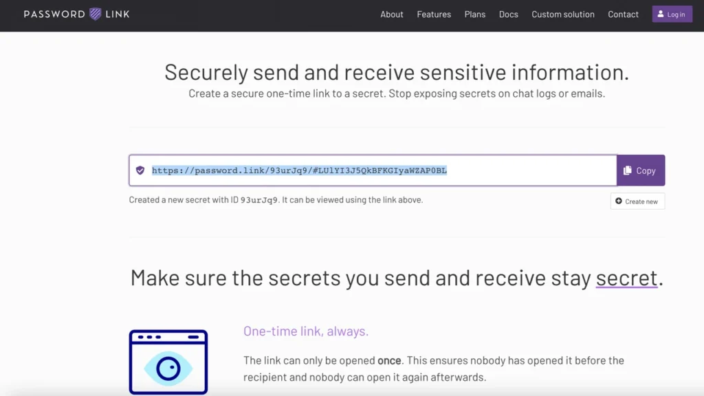 Send sensitive information with a single-use link. Once opened, the link expires, ensuring no one can view it again.