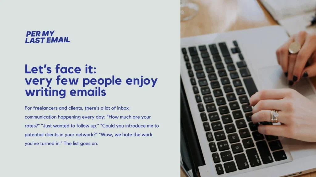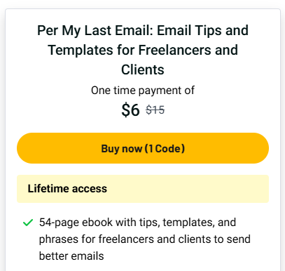 Writing emails can be hard. That’s where Per My Last Email comes in. This simple, 54-page ebook gives you easy templates, tips, and phrases that save time and make email writing feel easy. Whether you’re a freelancer or client, this guide helps you send better emails fast.