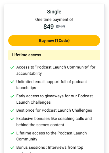 | One-time price with lifetime access | Not for advanced podcasters |