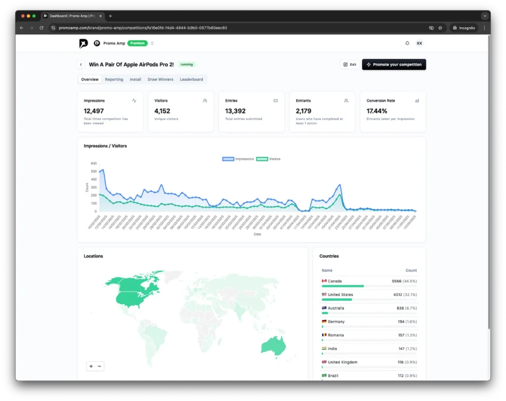 Growing an email list can be hard. Running a giveaway shouldn’t be. Promo Amp makes it simple to create, launch, and manage viral giveaways—without any tech skills. Whether you’re a business, agency, or creator, Promo Amp helps you grow fast.