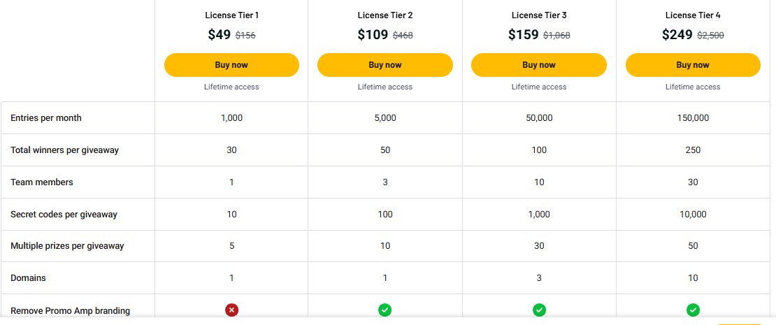 Run as many giveaways as you want. There’s no limit, even on the lowest plan. You can test, improve, and repeat without worrying about extra costs.