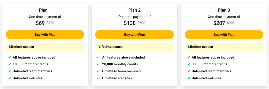 | All tools in one dashboard | Credit limits on each plan |