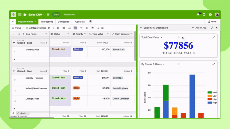 Set up simple rules to update records, send emails, or sync data. Automations can trigger from form responses, time, or webhooks. It saves time by doing the boring stuff for you.