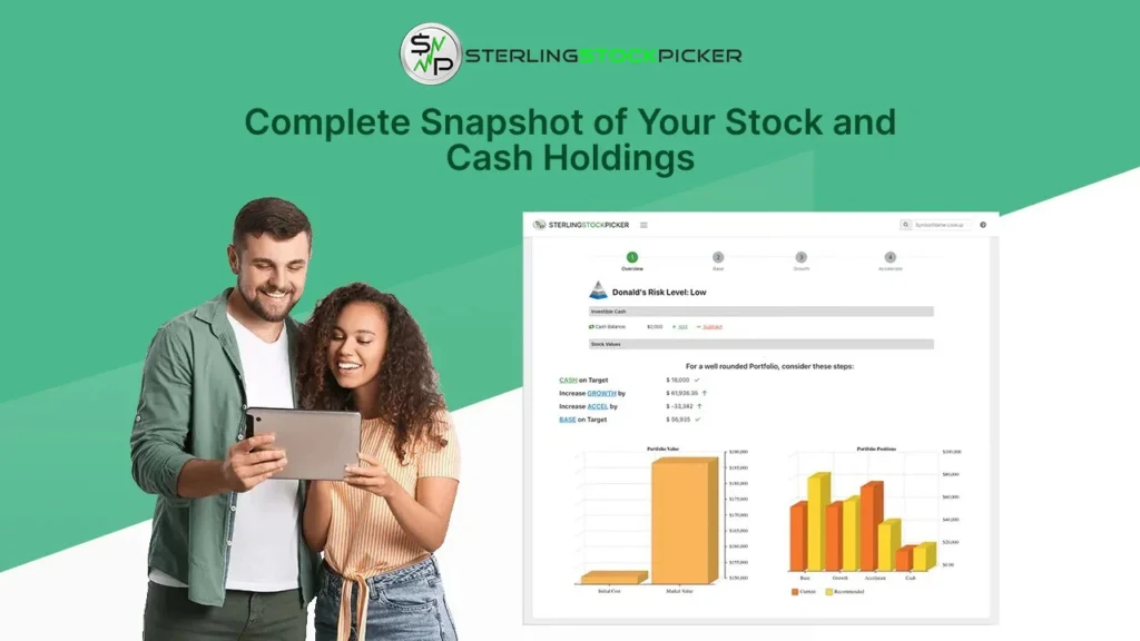 Sterling Stock Picker learns about your risk level and goals. It then suggests stocks and cash plans that fit you. You don’t have to guess where to put your money.