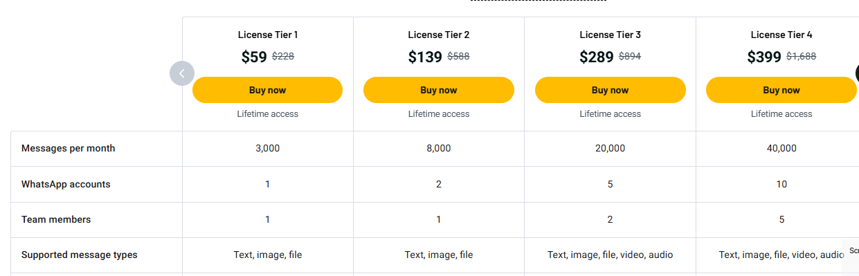 | No per-message cost | Basic media support in lower plans |
