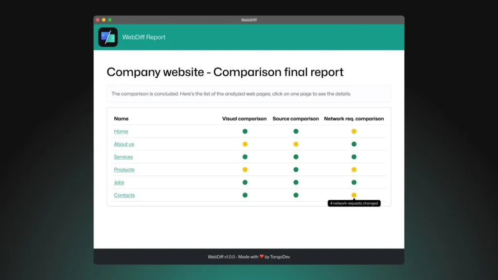WebDiff runs automated comparisons in the background. You get notifications when reports are ready, so you can focus on other tasks without waiting.