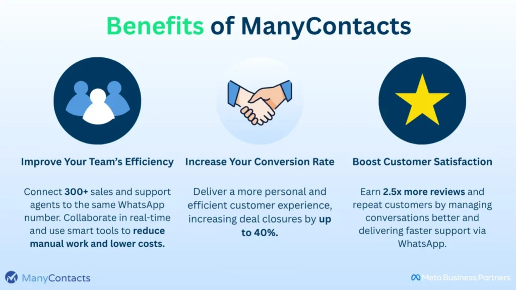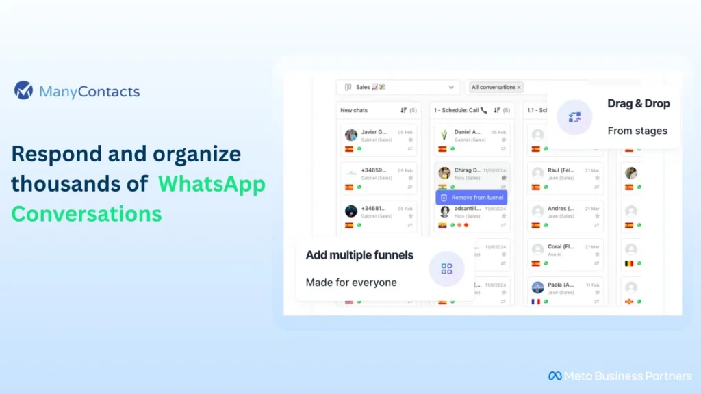 Handling WhatsApp chats all day can be hard. Messages get lost. Leads go cold. ManyContacts solves that. It turns your WhatsApp into a smart, shared CRM. No more chaos—just clear, simple tools for support and sales.