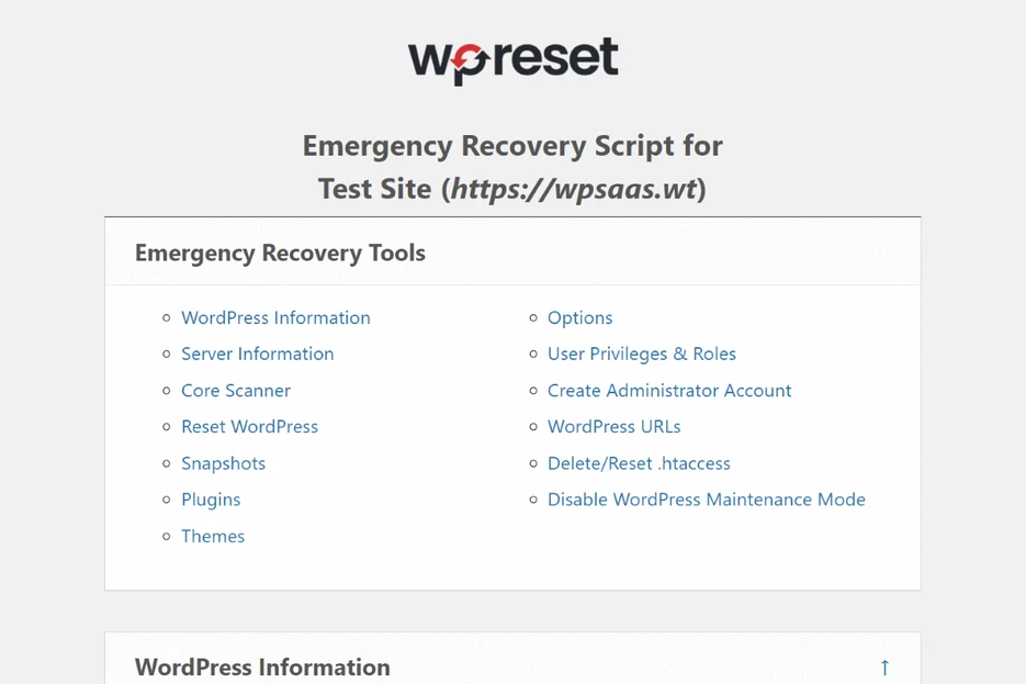 Even if your site crashes or shows a blank screen, WP Reset can help. Its Emergency Recovery Script lets you fix big problems fast. You can use it even if you can’t log into your site.
